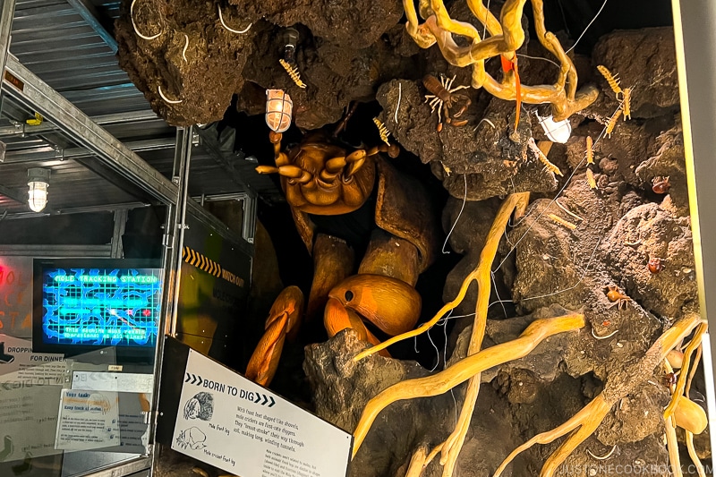 In Underground Adventure, visitors are transported to an underground world where they’re shrunk to 1/100th of their size and learn about soil science.