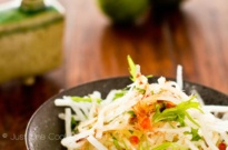 Daikon is mild-flavored, very large, white Japanese radish, and it’s often used as garnishing for sashimi or grated and served with Agedashi Tofu or Tempura. For this salad, I shredded daikon into long thin strips so that it gives a nice crunchy texture while you eat. Daikon is widely available at Asian markets and sometimes even in Western supermarkets in the US. To pick a good daikon, just make sure the inside looks juicy and not dry. If you are also able to get organic daikon, I highly recommend it since the flavor is much better than regular ones.