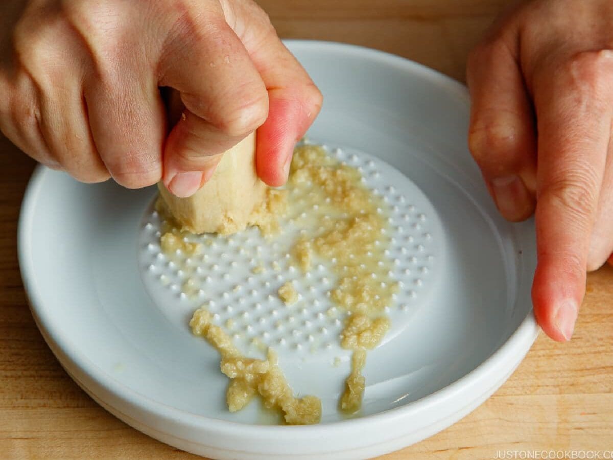 Grating ginger can be a tedious task, which is why I love using Kyocera Advanced Grater. I’ve owned it for over a decade, and it makes grating so much easier! The raised central plate even allows the ginger juice to gather.