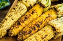 - Put a sheet of aluminum foil under the husk “handles” to keep the husks from burning.