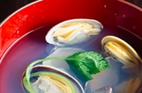 When using clams in the soup, we want to make sure that the flavors coming from the clams are prominent. Therefore, we use dashi broth with the most subtle flavor—Kombu Dashi.