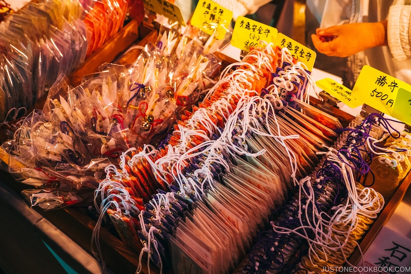 This tradition, deeply ingrained in Japanese culture for centuries, is observed by most places of worship. Popular shrines like Meiji Shrine (明治神宮) in Tokyo can easily attract several million people during the three days. Many women take this opportunity to dress up in colorful kimono (着物) for their visit. Visitors will also buy a good luck charm called omamori (お守り) at the temple, which is kept as protection from illness, accidents, and disasters.”