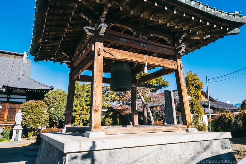 As far as midnight traditions go, the Japanese stay up until midnight to listen to the 108 chimes of temple bells, which we call joya no kane (除夜の鐘). Just before midnight, temples throughout Japan strike their big bells 108 times.
