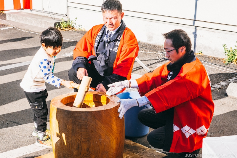 Mochi Tsuki (餅つき), or pounding glutinous rice to make mochi, is an important traditional event in preparation for Japanese New Year and it is usually performed on the 28th, which is considered an auspicious day.