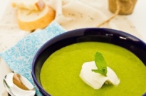 - Pour the soup back into the soup pan. Adjust the seasoning based on yuur preference and serve into bowls. Garnish with the Crème Fraîche and mint leaves.