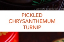 The Japanese love chrysanthemum and it is used widely in Japanese culture and food. Bright yellow chrysanthemum is often used to garnish sushi and sashimi platters. And in today’s recipe for pickled chrysanthemum turnip, the symbol of the flower is served as a part of the traditional Japanese New Year’s Day food Osechi Ryori. The white and red color of the dish represents the happiness and the flower represents longevity for the coming year.
