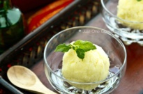 Pineapple has been one of my husband’s favorite fruits ever since he was a child in Taiwan. I’ve tried pineapples in Taiwan, and they are ridiculously sweet. He really enjoyed the Pineapple Upside Down Cake that I made, as it contains one of his favorite fruits. Since I enjoy making sorbet in the summertime, I thought it would make a lovely dessert by using pineapple. True enough, he loved the sorbet very much!