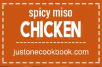 - Meanwhile, make the spicy miso sauce. In a small bowl, combine 4 Tbsp miso, 2 Tbsp mirin, and 1 Tbsp sriracha sauce and mix all together. You can apply the sauce when the chicken is done, or you can put the sauce in a small dish and serve at the table with the chicken.