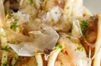 • Dried bonito flakes, aonori (dried green laver seaweed), and pickled red ginger