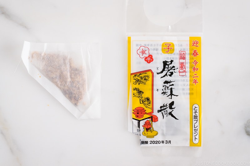 First, the entire family would slip toso (屠蘇), a sake or mirin infusion originally from China. There are some variations, but it usually includes herbs such as cinnamon, rhubarb, and sansho (Japanese pepper). The youngest would drink this herbal sake before handing it to their elders, so the joy of the youngsters passes down to their elders. The Japanese believe drinking toso wards off ailments for the year and invites peace within the household.